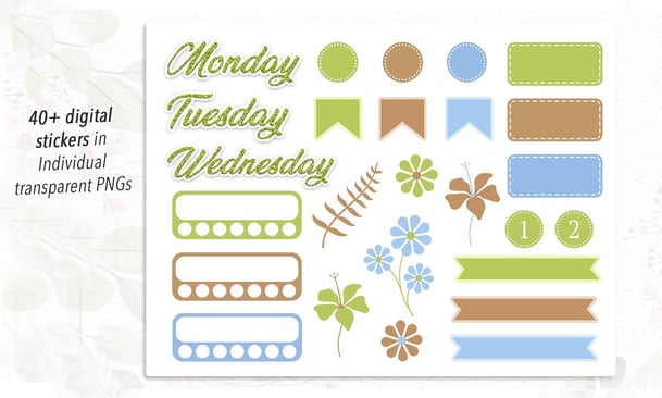 Digital Stickers - Floral Spring Theme